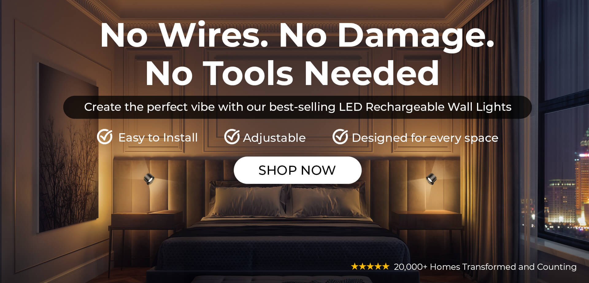 Upgrade your bedroom lighting with sleek, wireless sconces — no drilling, no tools, just instant ambience.